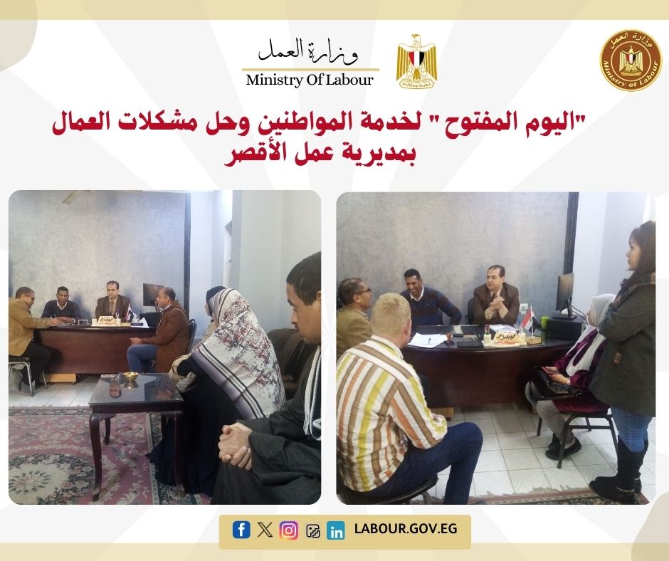 “اليوم المفتوح” لخدمة المواطنين وحل مشكلات العمال بمديرية عمل الأقصر