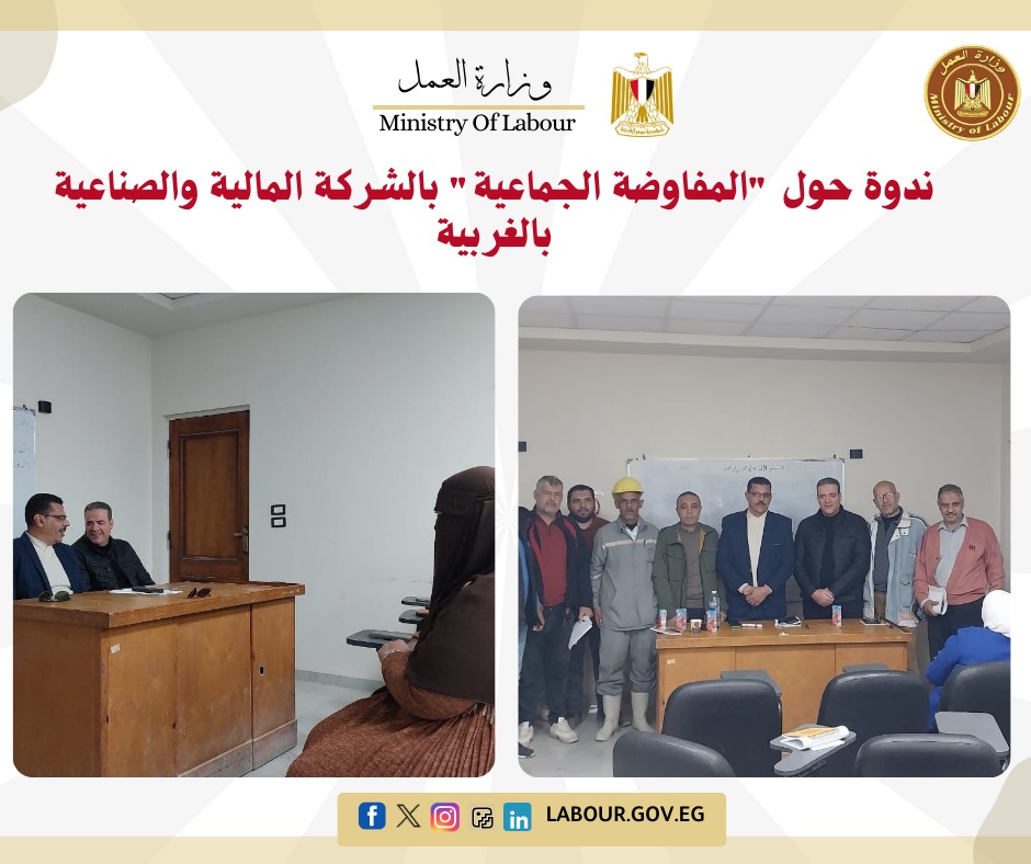 في إطار تعزيز ثقافة الحوار الاجتماعي، نفذ مكتب تفتيش عمل كفر الزيات ندوة توعوية بالشركة المالية والصناعية حول “المفاوضة الجماعية”، تناولت الندوة آليات الحوار بين طرفي العملية الإنتاجية لتحقيق الاستقرار داخل المنشأة، وحضرها 30 عاملاً من مختلف الإدارات بإشراف المهندس نهاد عبد المعطي وكيل وزارة العمل بالغربية.