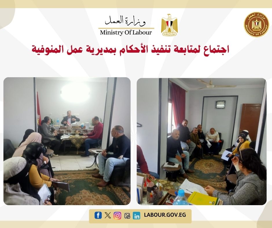 اجتماع لمتابعة تنفيذ الأحكام بمديرية عمل المنوفية