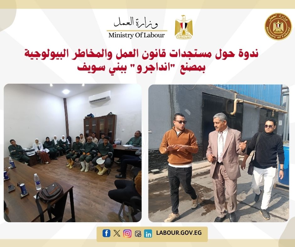 ندوة حول مستجدات قانون العمل والمخاطر البيولوجية بمصنع “انداجرو” ببني سويف