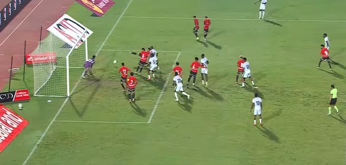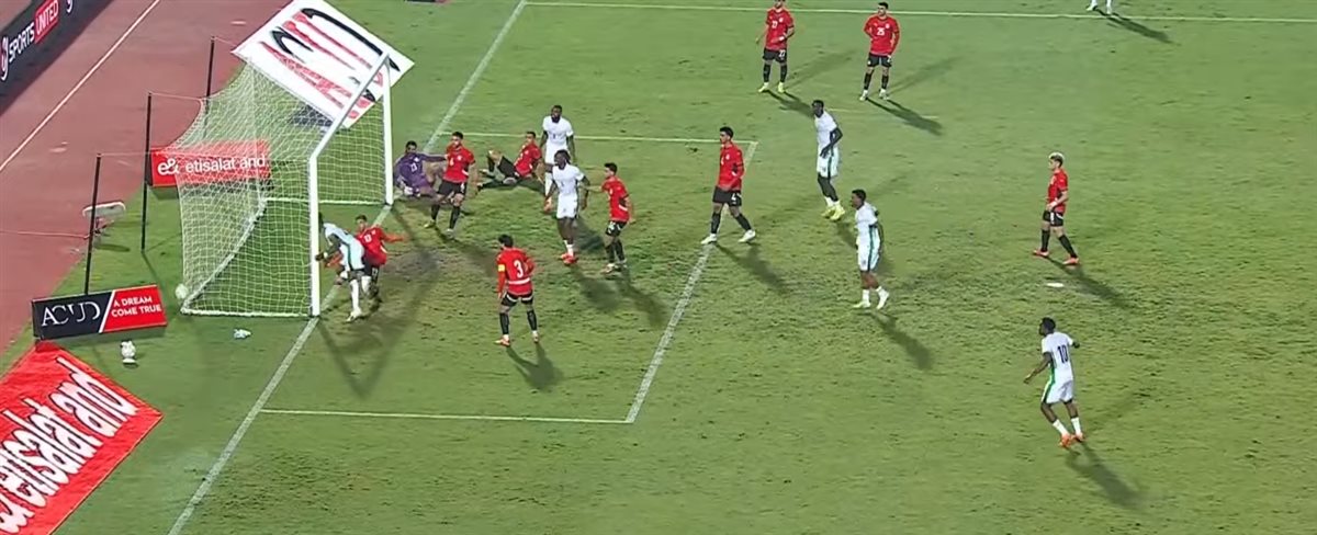 قبل نهاية الشوط الأول، تعادل منتخب نيجيريا عن طريق أوازيم بعد عرضية من الجهة اليمنى سقطت من يد محمد الشناوي ووصلت للمهاجم الذي سجلها بسهولة.