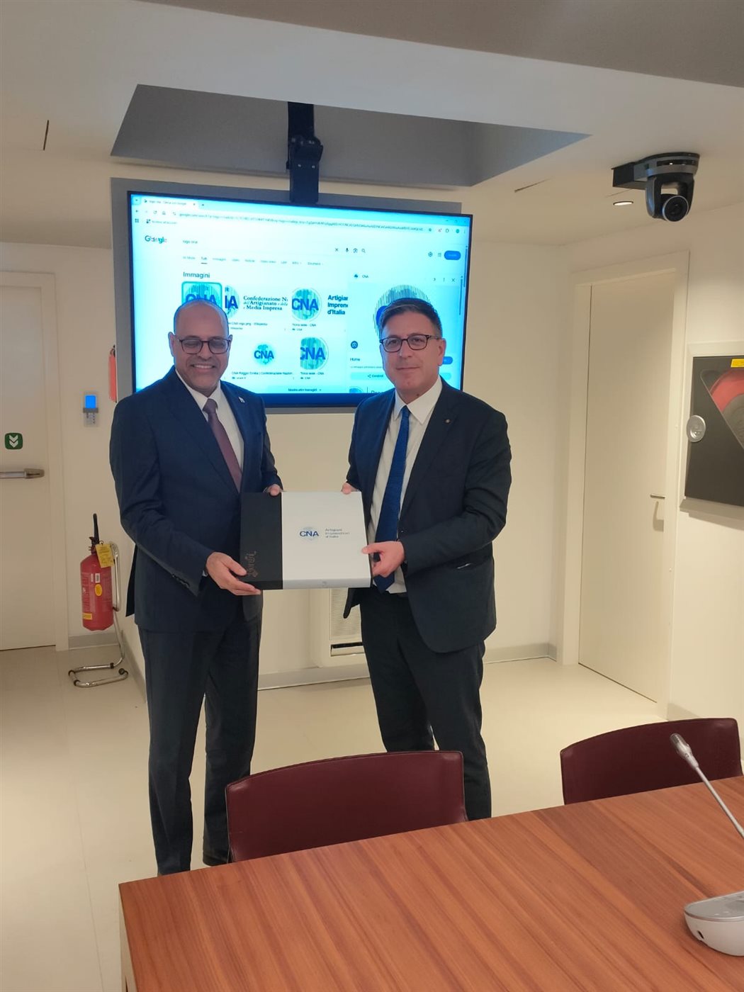تناول اللقاء مناقشة المشروع المقترح من اتحاد CNA، المرسل من وزارة الاستثمار والتجارة الخارجية بتاريخ 15-10-2025، بعنوان: «المشروع الأوروبي التجريبي للمواطنين المصريين ورعايا الدول الثالثة – مسارات العمل للحرف والمؤسسات الصغيرة والمتوسطة: التدريب من أجل التوظيف»