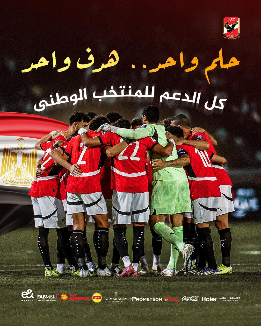 الأهلي نشر صورة للمنتخب على فيسبوك وعلق عليها بعبارة «حلم واحد.. هدف واحد».