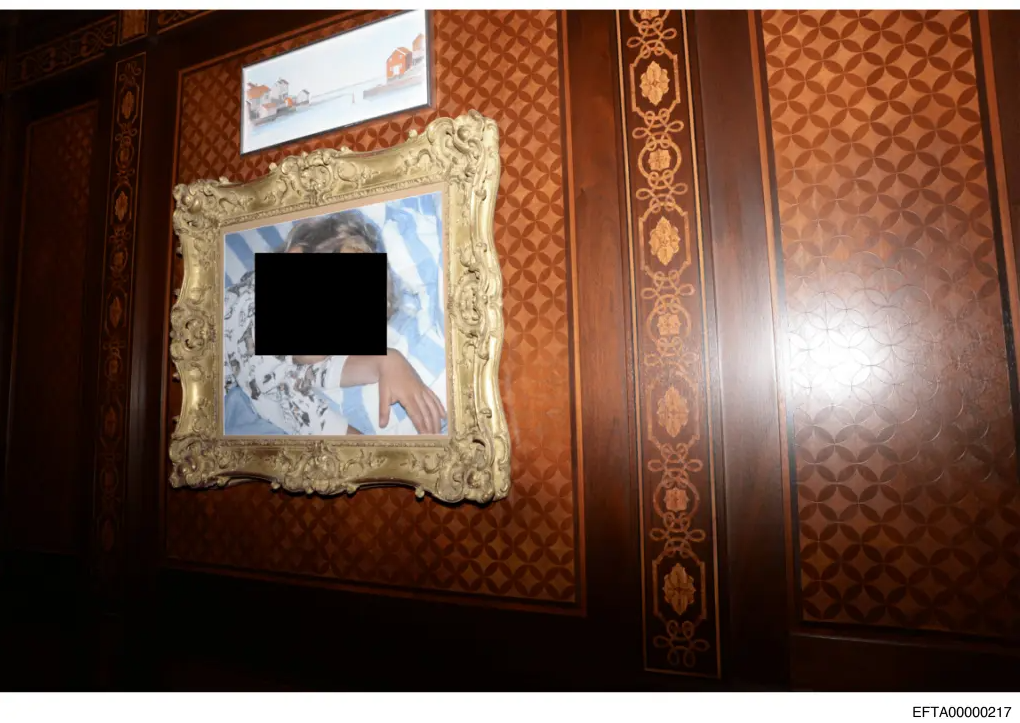 وفي لقطة أخرى، يظهر عمل فني يثير القلق لطفل صغير ينظر داخل ملابسه الداخلية، وهو معروض في منزل الممول الراحل المدان بالاعتداء على الأطفال.