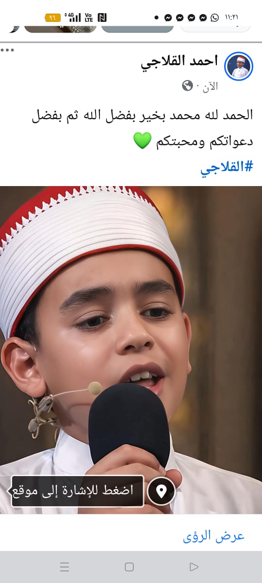 طمأن أحمد القلاجي، والد القارئ الصغير محمد أحمد حسن إسماعيل القلاجي، جمهور نجله بعد الوعكة الصحية التي مر بها مؤخرًا، مؤكدًا أن حالته الصحية تحسنت بشكل ملحوظ.