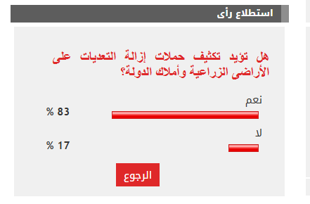 الاستطلاع جاء في وقت تشهد فيه البلاد جهودًا مكثفة للحفاظ على الأراضي الزراعية وضمان عدم التعدي عليها، وهو ما يعكس أهمية هذه القضية لدى المواطنين، ويبدو أن الغالبية ترى أن هذه الحملات ضرورية لحماية الثروات الوطنية.