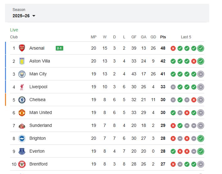 بعد الفوز ده، أرسنال بقى عنده 48 نقطة في صدارة الدوري بفارق 6 نقاط عن أستون فيلا، بينما بورنموث جمد رصيده عند 23 نقطة في المركز الخامس عشر.
