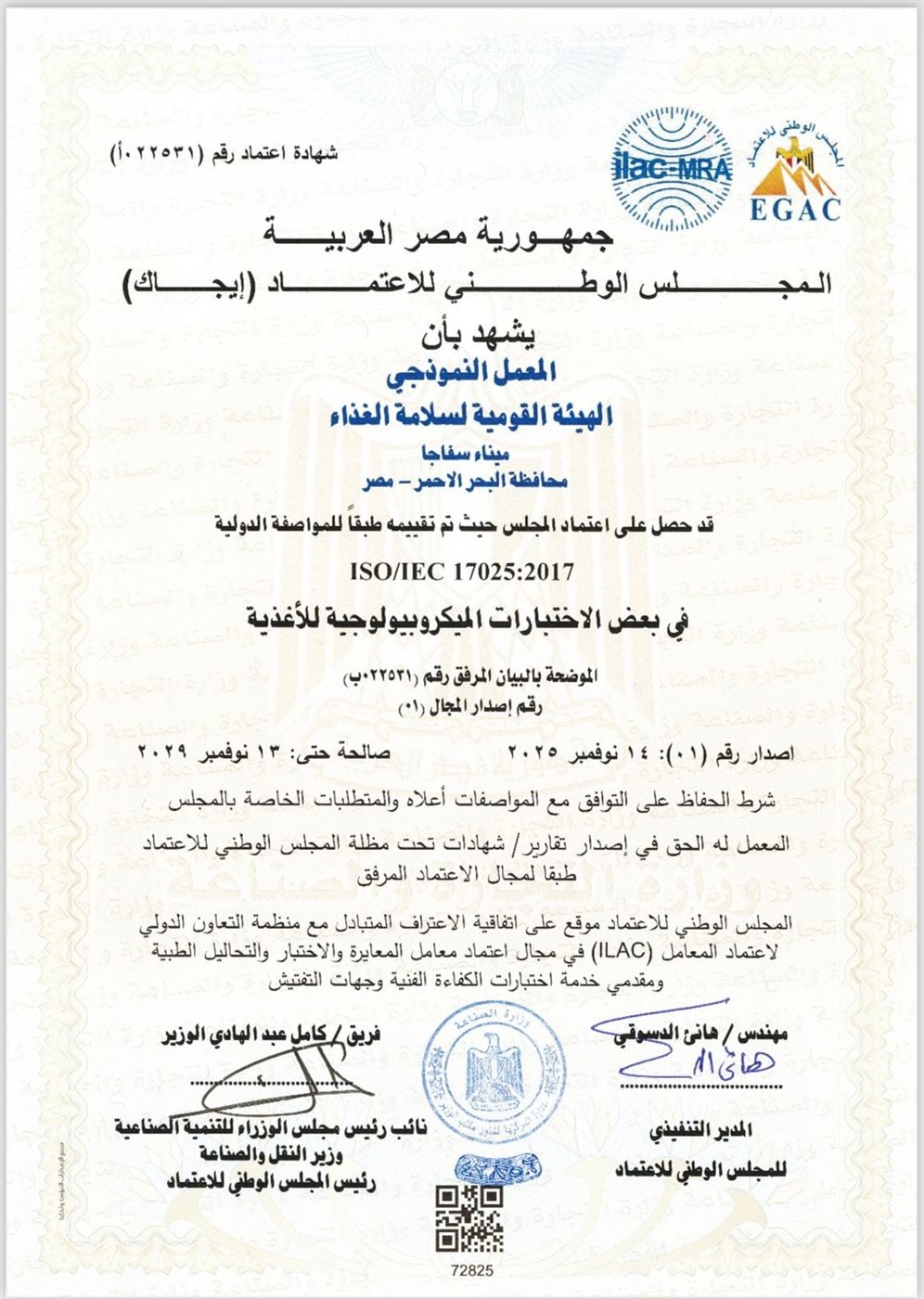 أعلنت الهيئة القومية لسلامة الغذاء عن حصول معمل سفاجا على الاعتماد من المجلس الوطني للاعتماد إيجاك، وذلك وفقًا للمواصفة الدولية ISO/IEC 17025:2017 الخاصة بكفاءة معامل الفحص والاختبار. يأتي هذا الاعتماد كجزء من جهود الدولة لتطوير منظومة سلامة الغذاء وتعزيز كفاءة المعامل.